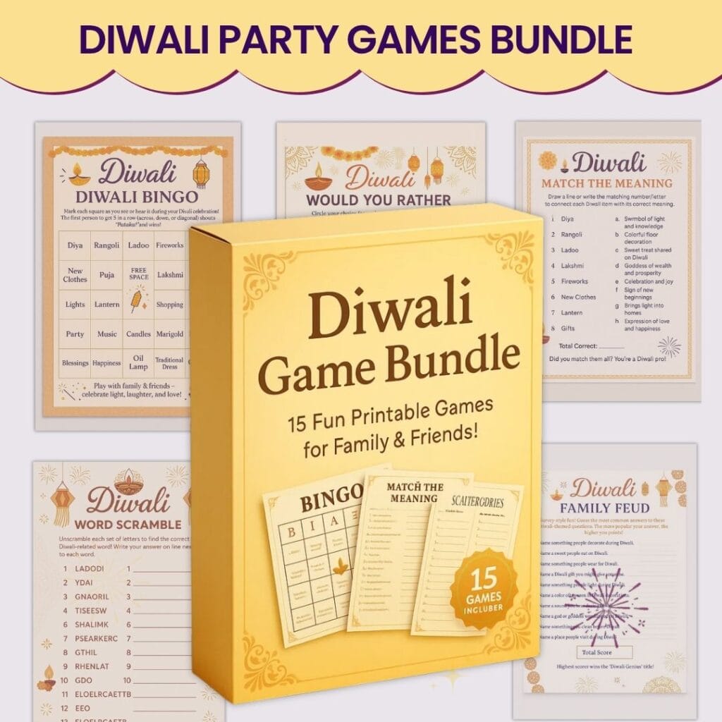 - Fun, family-friendly printable games like Diwali Bingo, Match the Symbol, and more.